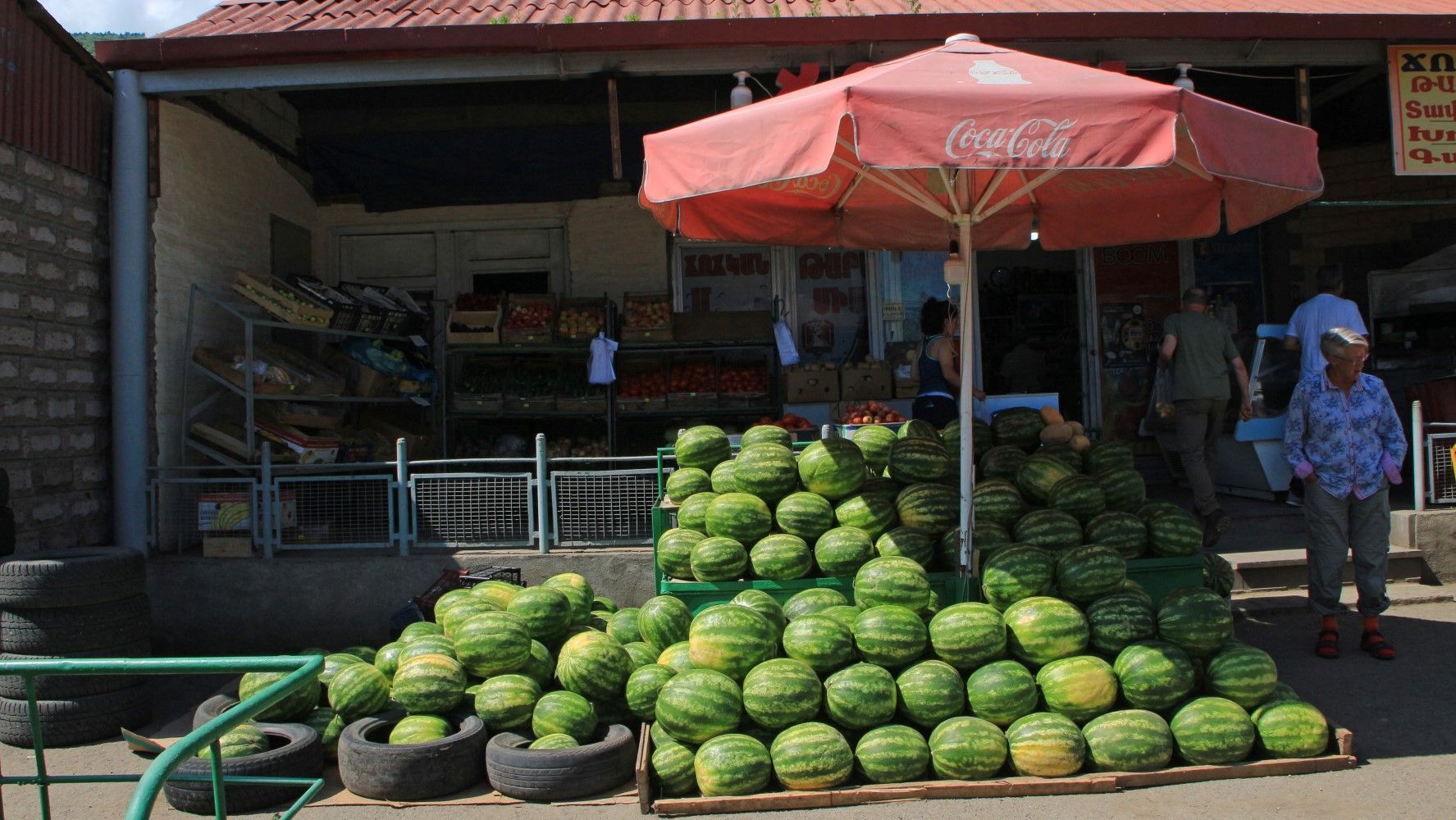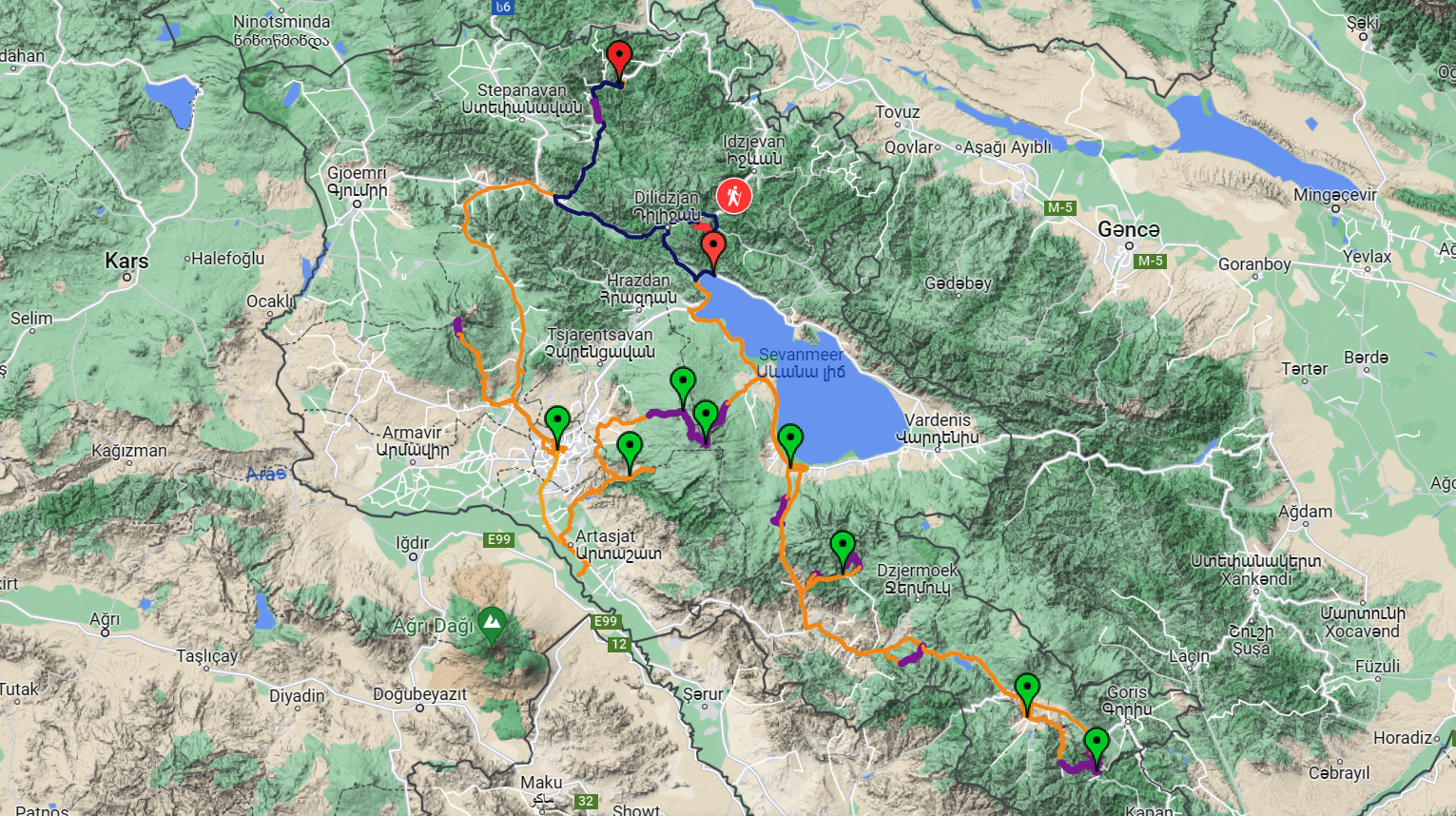 Even na 9 uur vertrekken we uit het hotel en na een korte stop voor inkopen bij een groenteman rijden we in een kleine 3 uur naar het in Sovjettijd geliefde vakantieoord Dilijan. Via de beukenbossen en wilde fruitbomen rijden we omhoog naar een in de bossen verscholen troebel bergmeertje. Ani zou er niet in willen zwemmen. Samen met de verpauperde speeltuin niet echt een aantrekkelijk vakantieoord. Maar de bossen er om heen zijn meer dan de moeite waard. De eerste pauze is al na 100 meter als iedereen nog even naar het openbare toilet wil.