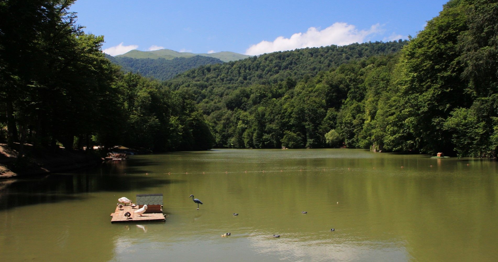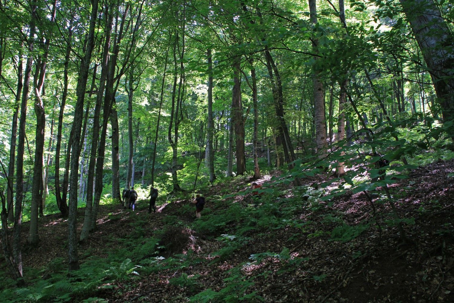Via de beukenbossen en wilde fruitbomen rijden we omhoog naar een in de bossen verscholen troebel bergmeertje...