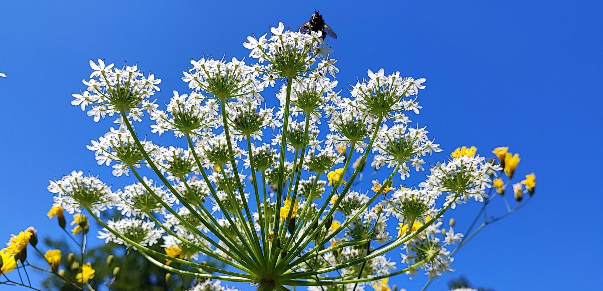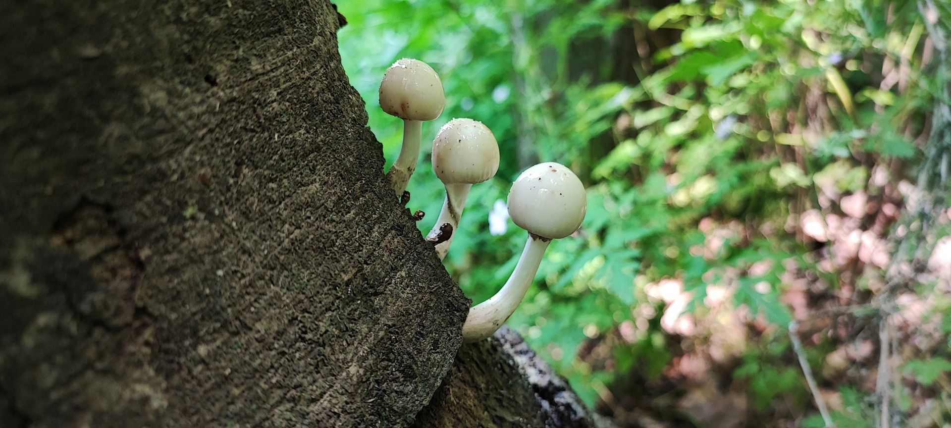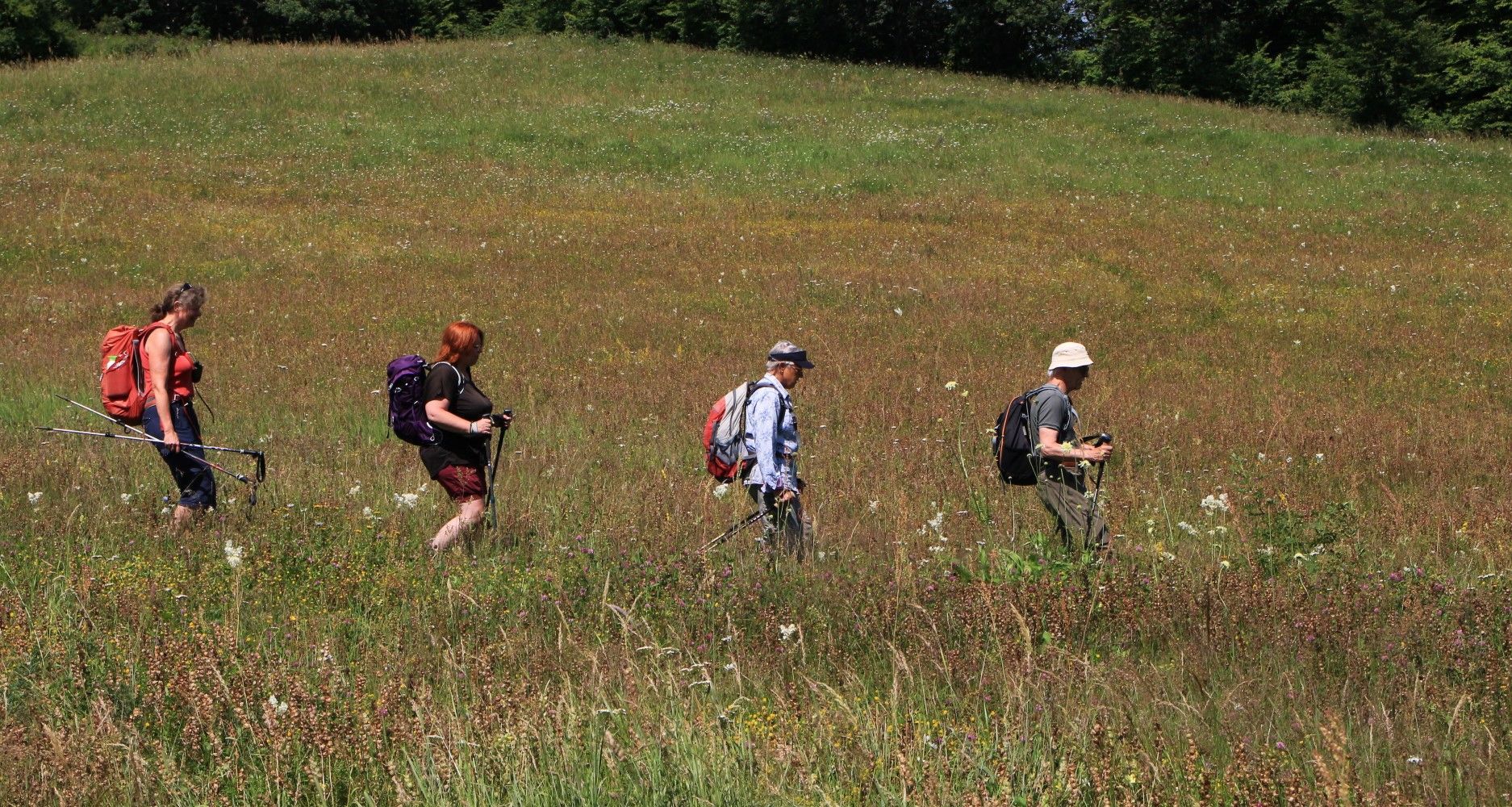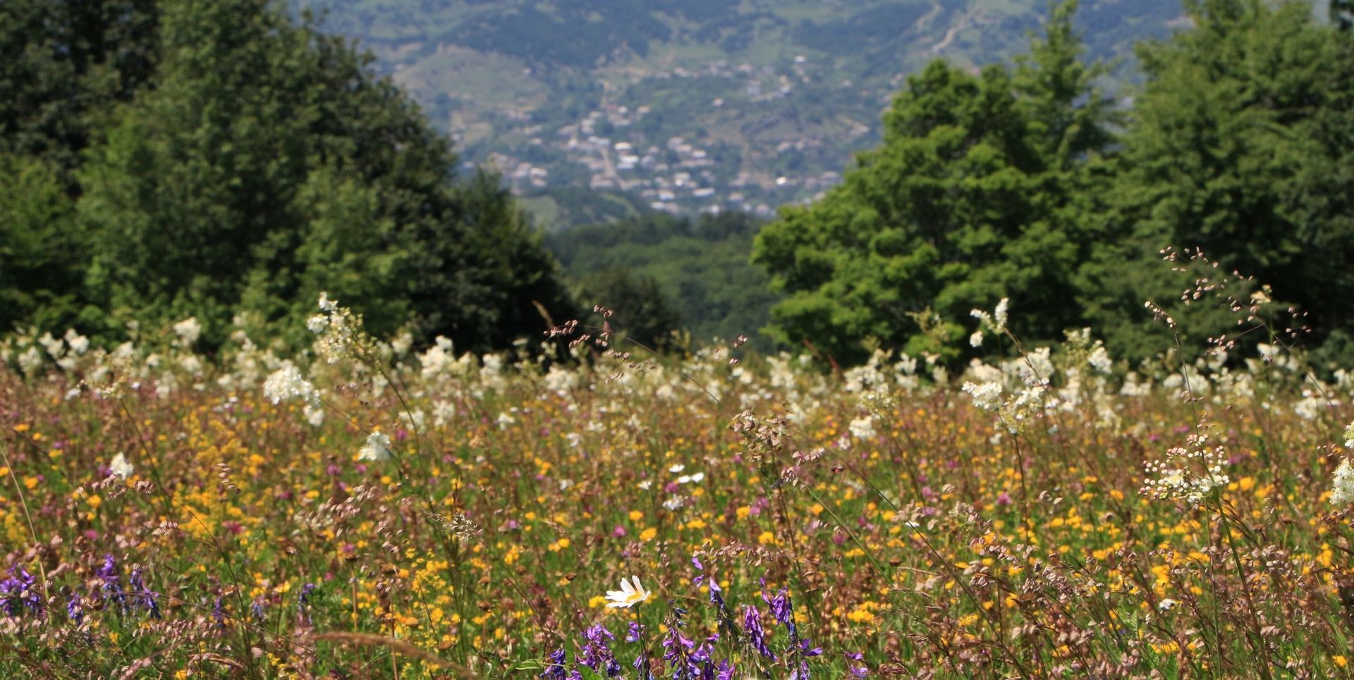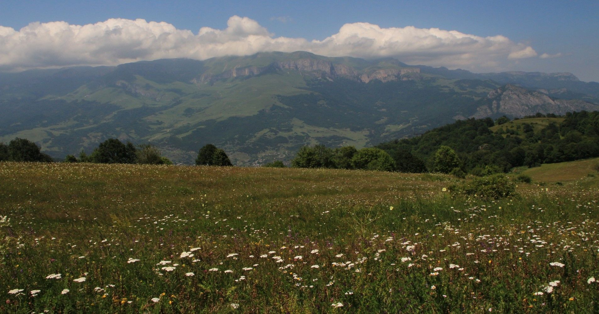 Geleidelijk stijgend volgen we het Transcaucasian Trail door het bos. Ed gaat helemaal uit zijn dak als hij de zeldzame “spookorchis” ziet, zeer bijzonder voor Armenië blijkbaar. We zien ook veel paddenstoelen en bloemen. Als we het bos uitkomen en de graslanden bereiken, hebben we een prachtige lunchplek aan een picknicktafel in de schaduw. Een zwarte hond bietst om de restjes en loopt de rest van wandeling met ons mee. Op deze graslanden is het een waar bloemenfeest, zoveel en zoveel verschillende soorten.