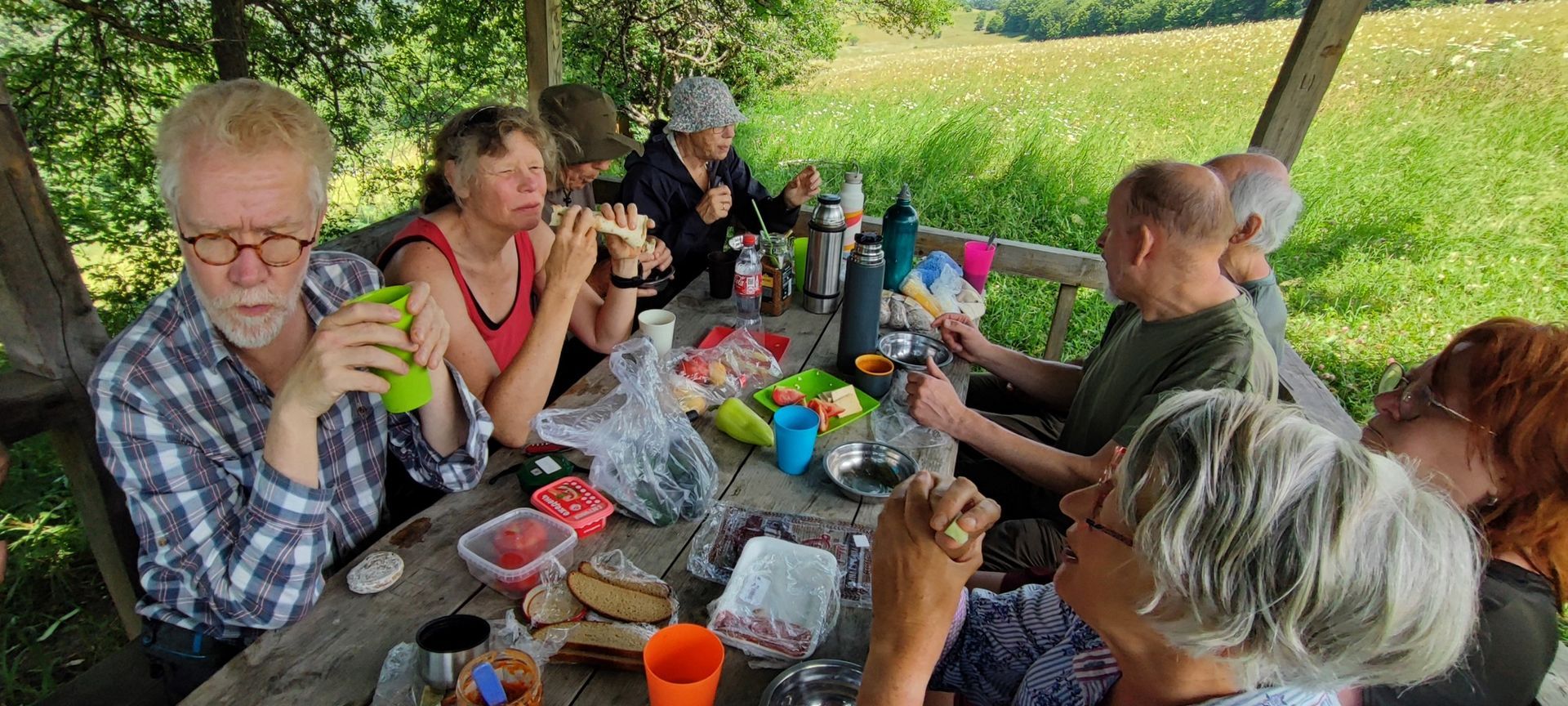 ...hebben we een prachtige lunchplek aan een picknicktafel in de schaduw.