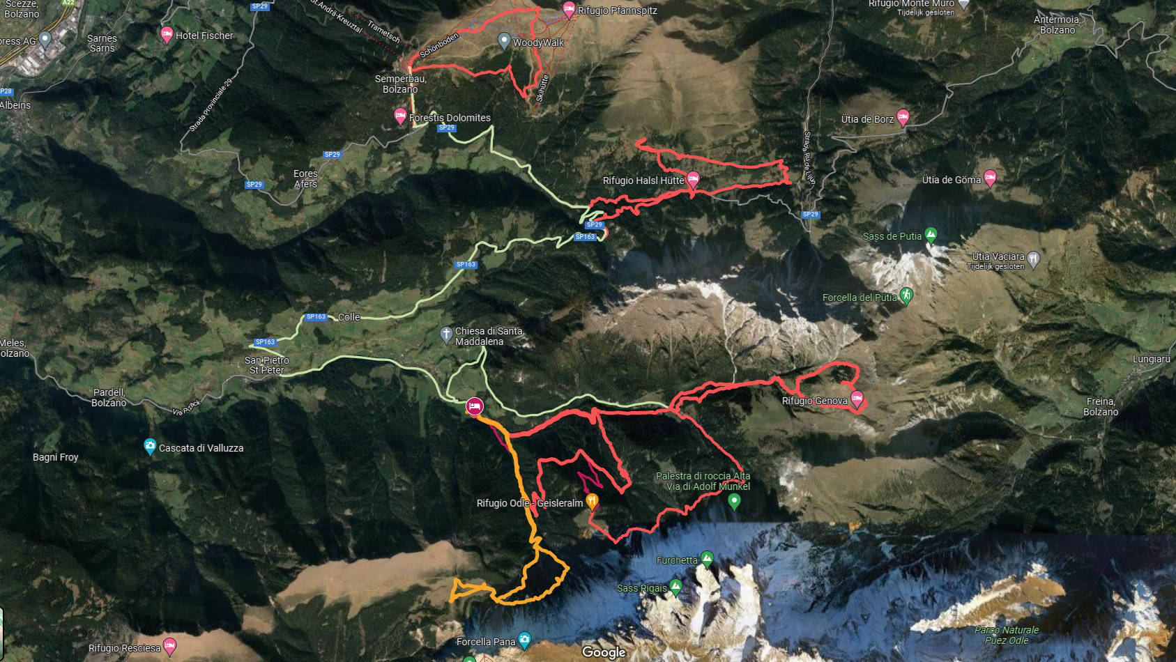 Eerst lopen we een al gelopen route tot het verscholen einde van het Villnöss dal.