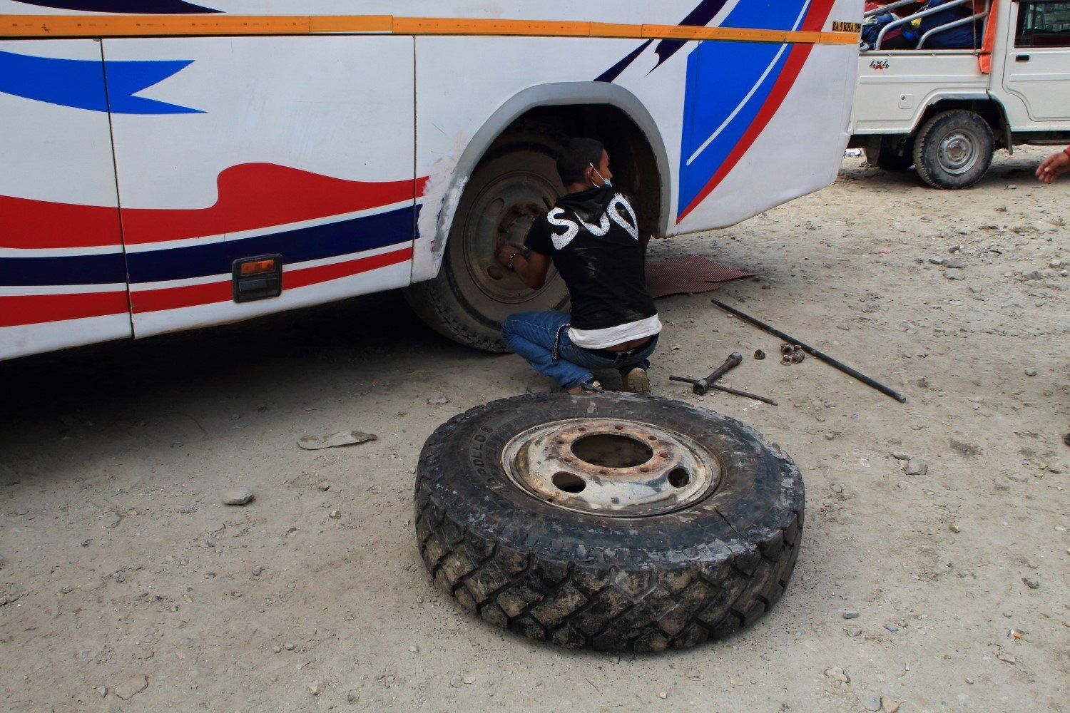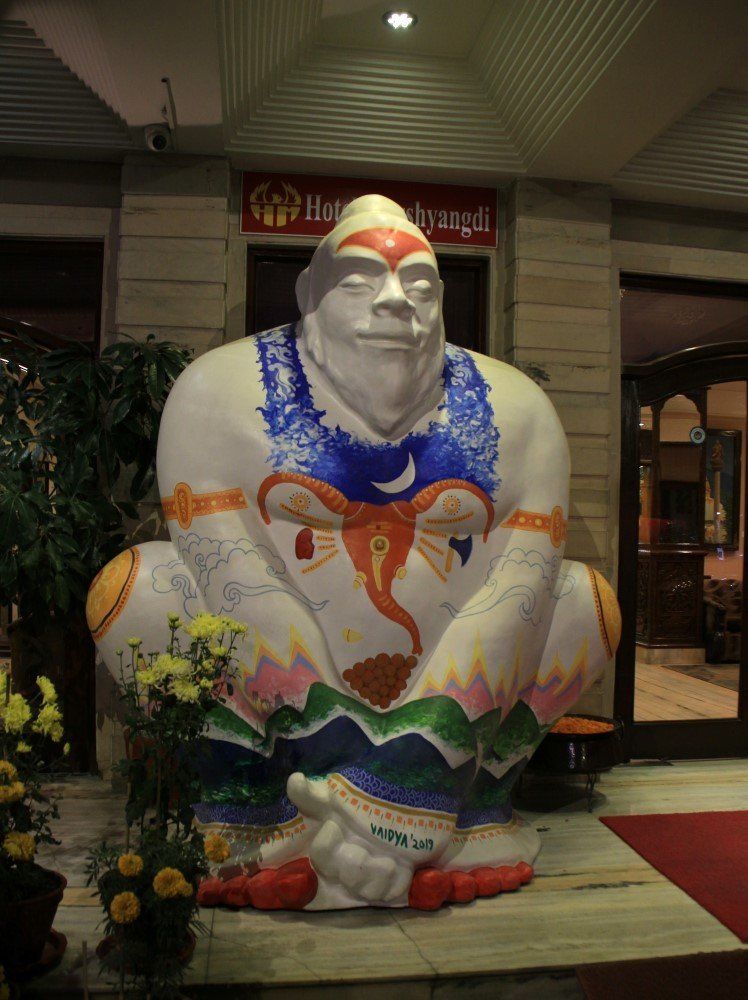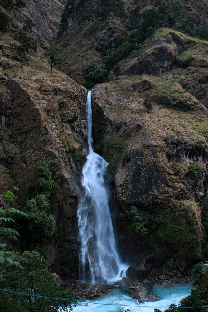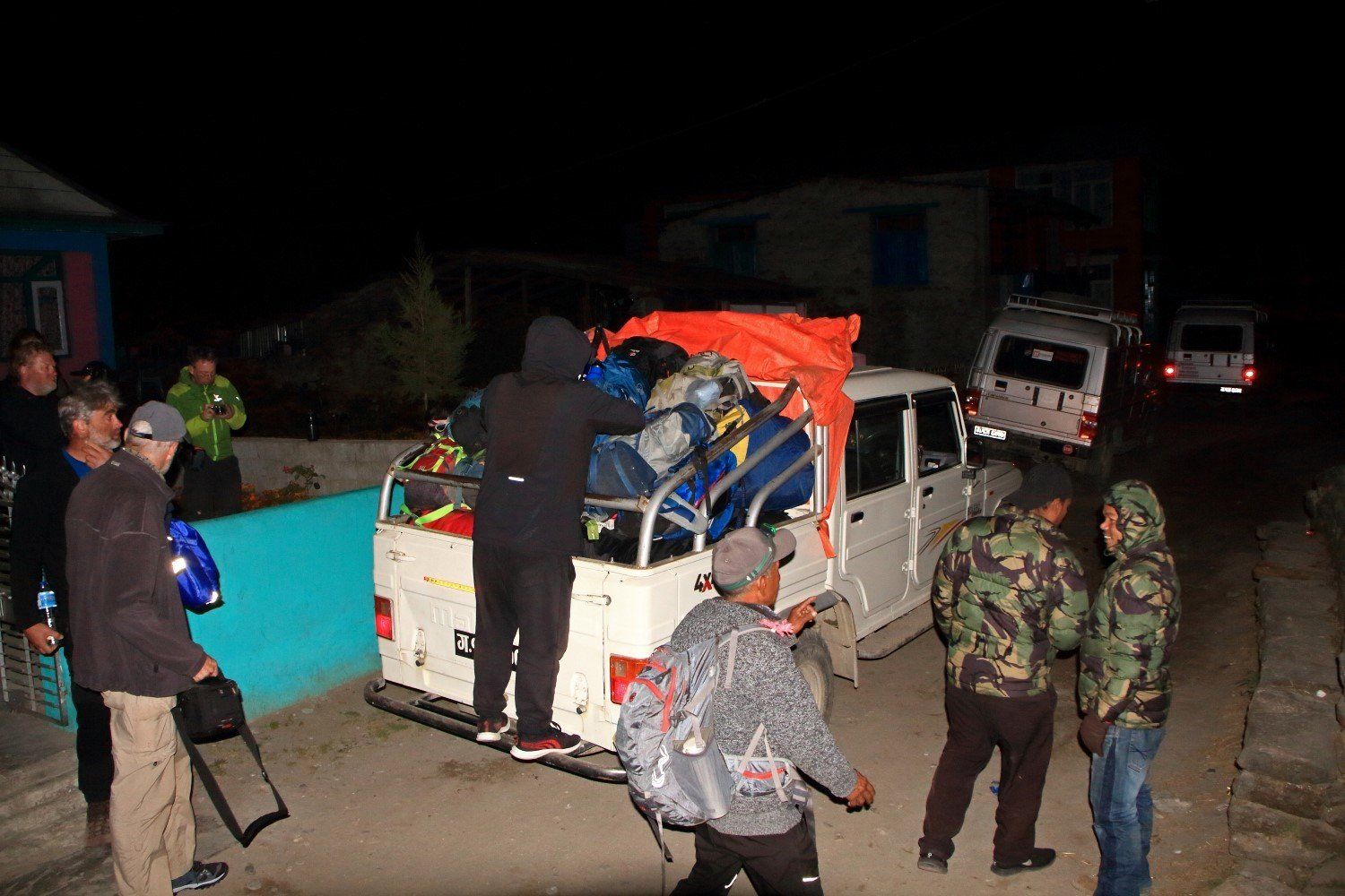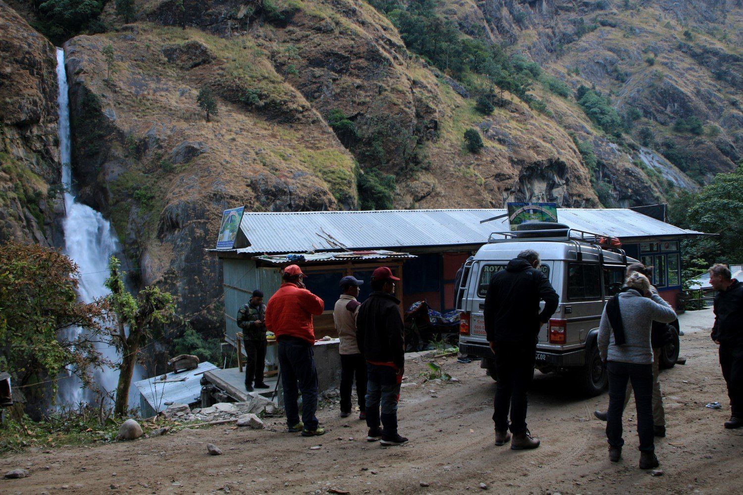 Vroeg op voor een lange reis terug naar Kathmandu. Het is nog donker als wij om 6 uur met drie jeeps vertrekken naar Besisahar. Drie uur hobbelen over een onverharde bergweg met her en der nogal wat kuilen. Onderweg stoppen wij bij een mooie waterval, waar ook een viskwekerij is. De vis wordt onder een kraan schoongemaakt. Om 9 uur zijn wij in Besisahar, waar onze bus er wel al is, maar nog niet klaar is. Ze zijn nog bezig een achterwiel te wisselen. Vanaf Besisahar is er asfalt en gaat het rijden (iets) sneller. Bij Dumre komen we op de weg die van Pokhara naar Kathmandu loopt. Bij de lunchstop maken wij snel nog een aantal groepsfoto's. De pas naar de Kathmandu vallei levert gelukkig niet al te veel vertraging, maar in Kathmandu zelf ontkomen we niet aan de files. Het is wel weer even omschakelen aan deze drukte na 2 weken wandelen in de bergen. Even na vier uur zijn arriveren wij in het hotel. Het hotel zit vol met sporters van de South Asian Games. De boedha voor het hotel heeft daarom een ander kleurtje gekregen. Al die sporters uit verschillende landen geeft wel een leuk sfeertje in het hotel, zo wordt er fanatiek volleybal gekeken op een groot scherm en doen de voetballers van Bhutan een warming up op het piepkleine parkeerterrein van het hotel. Ook zit de Nepalese delegatie van