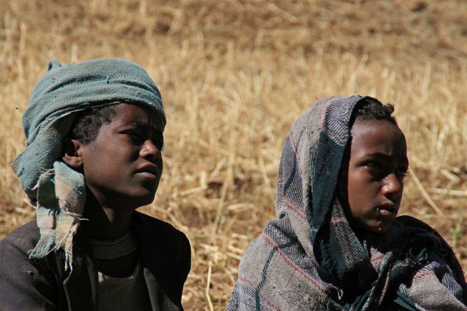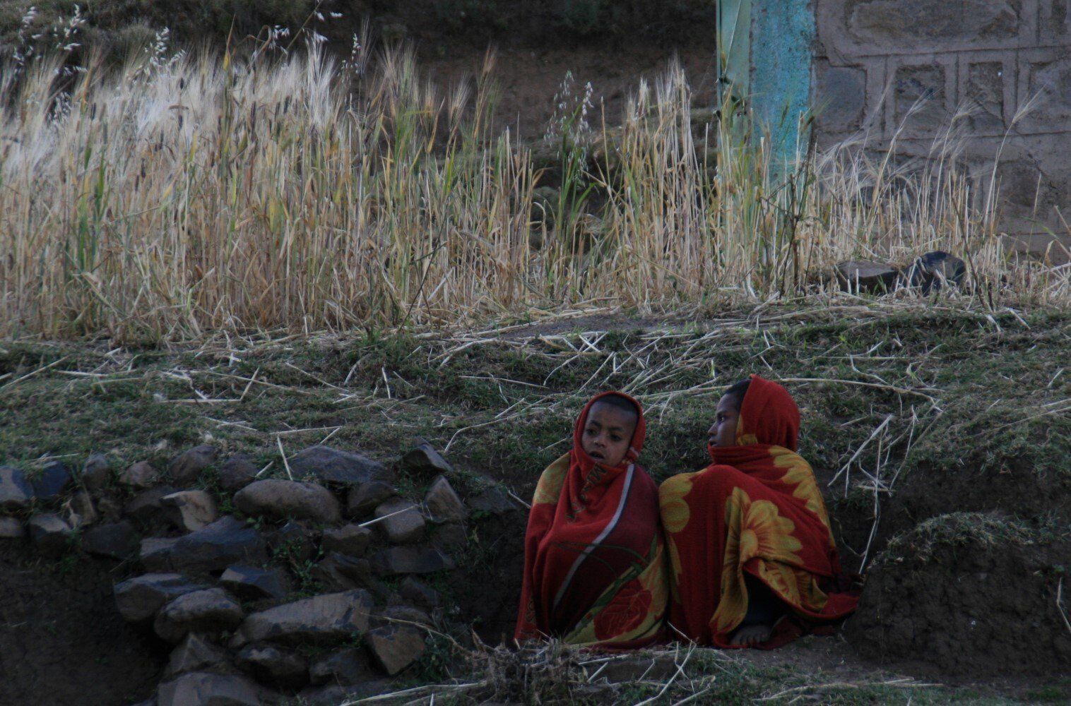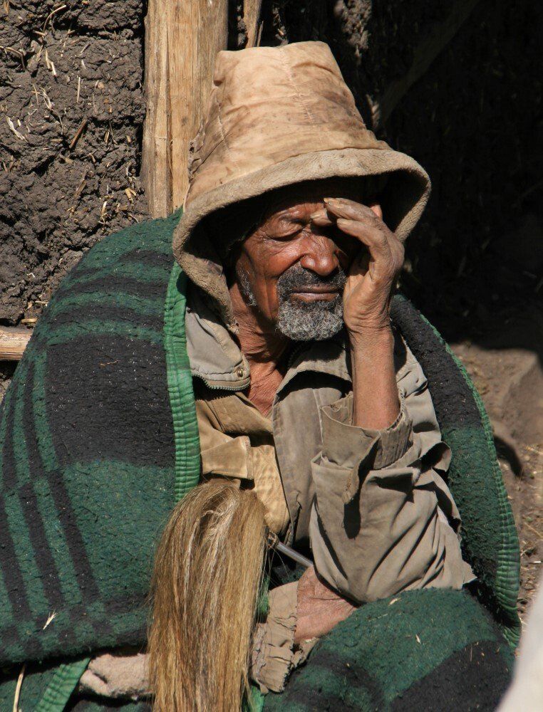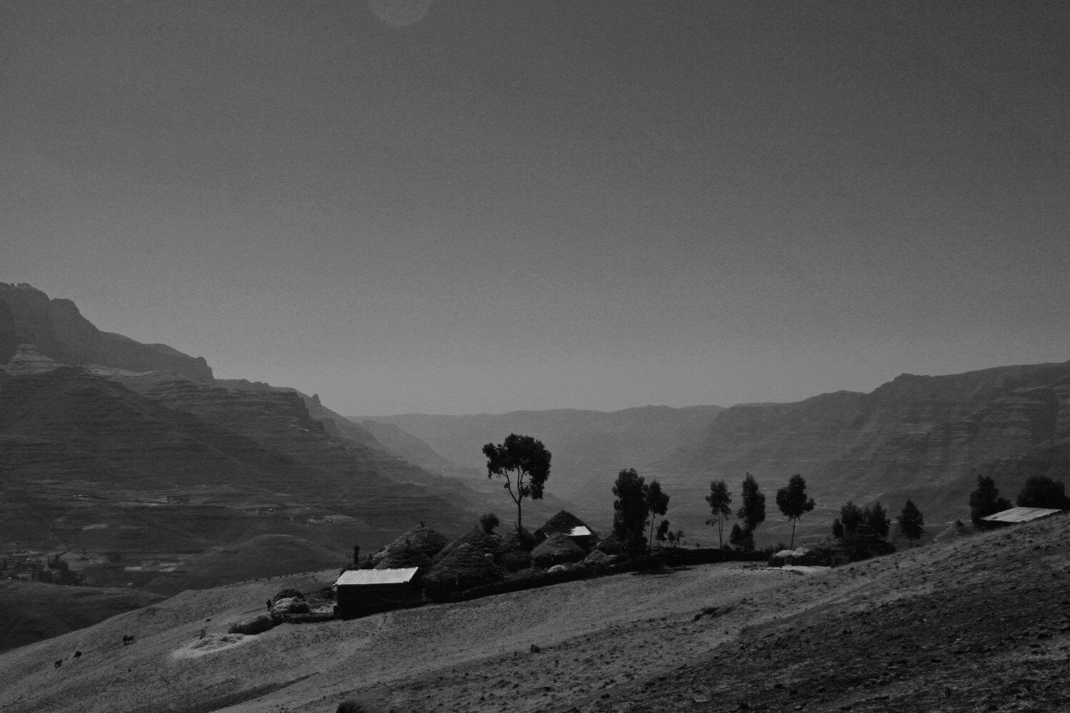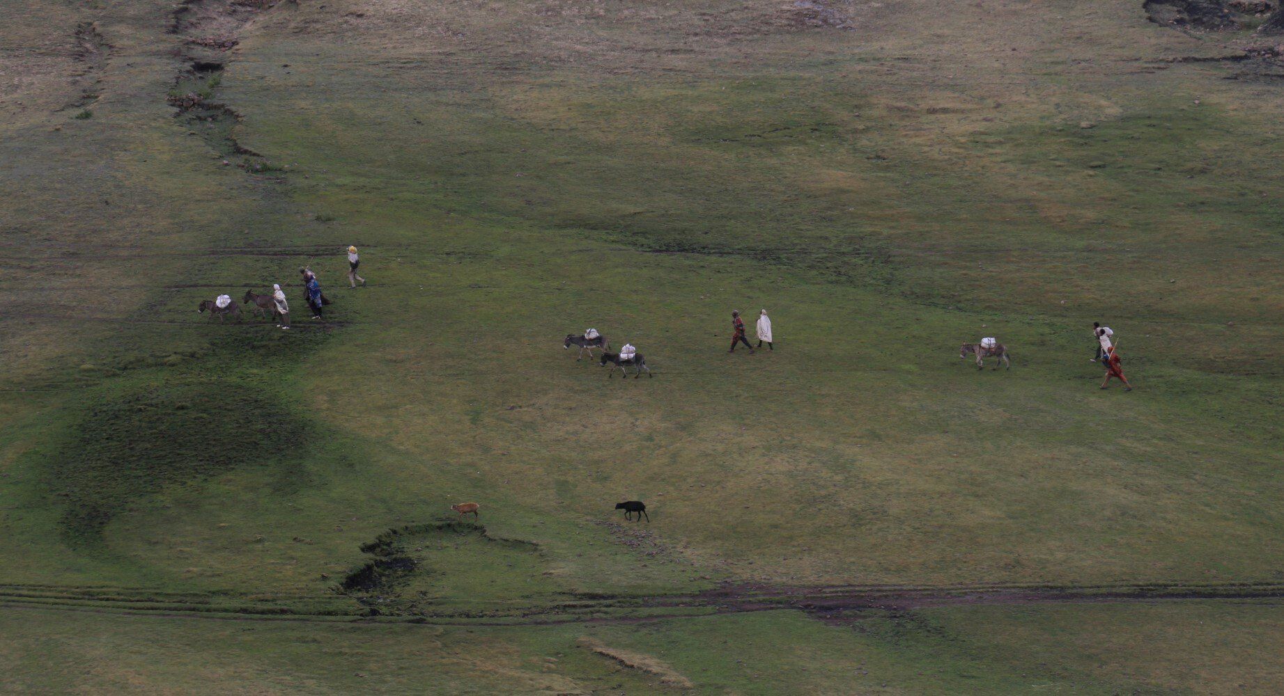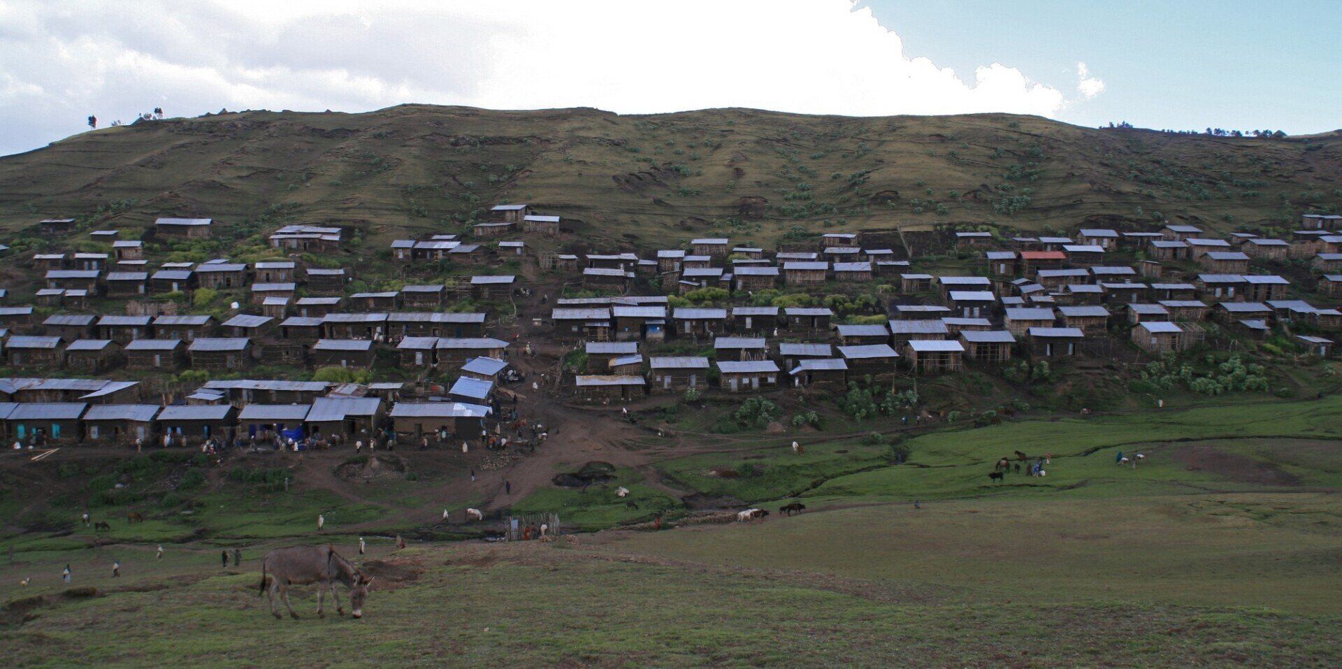 De dorpelingen kijken geïnteresseerd toe hoe wij al vroeg ons kamp opbreken. Het wordt een lange mooie dag, vanuit Ambiko wandelen we in 9 uur naar beneden in de Meseha rivier en via het Arkwazye dorp naar Sona. De hele dag wandelen we door glooiende graan en teff velden en vinden we bloeiende cactussen op ons weg. Hier en daar een hutje of boerderij op een heuvelrug. Het is warm, en elke keer als we uitpuffen krijgen we gezelschap van kinderen. En het is ongelooflijk in wat voor vodden de kinderen rondlopen. We passeren een boer die zijn vee naar het grasland brengt. Bij meerdere rust pauzes proberen plaatselijke bewoners handgemaakte souvenirs te verkopen.