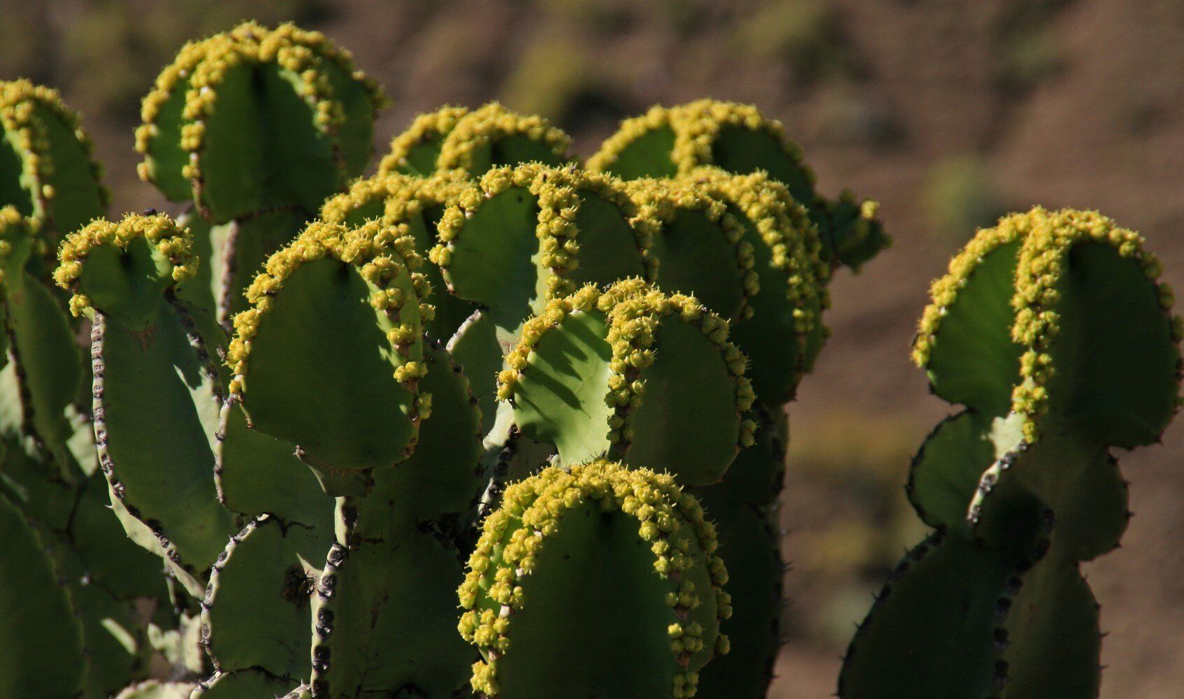 We vinden bloeiende cactussen op ons weg