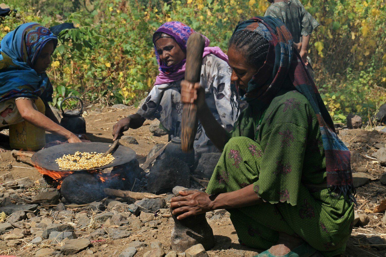 Natuurlijk krijgen wij ook vers gebrande Ethiopische koffie aangeboden.