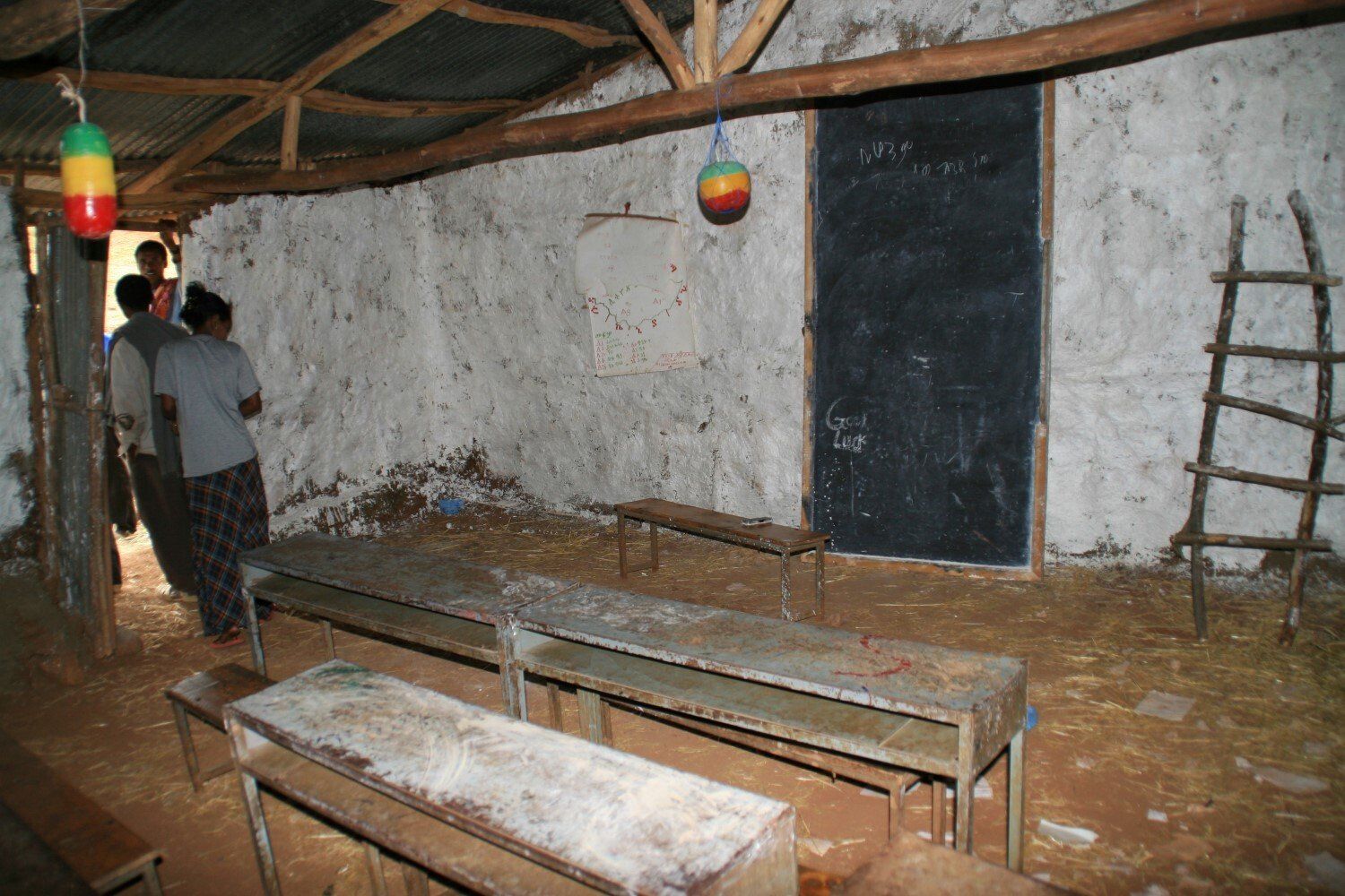 Van de jonge onderwijzeres/schoolhoofd mogen wij het schooltje bezichtigen.