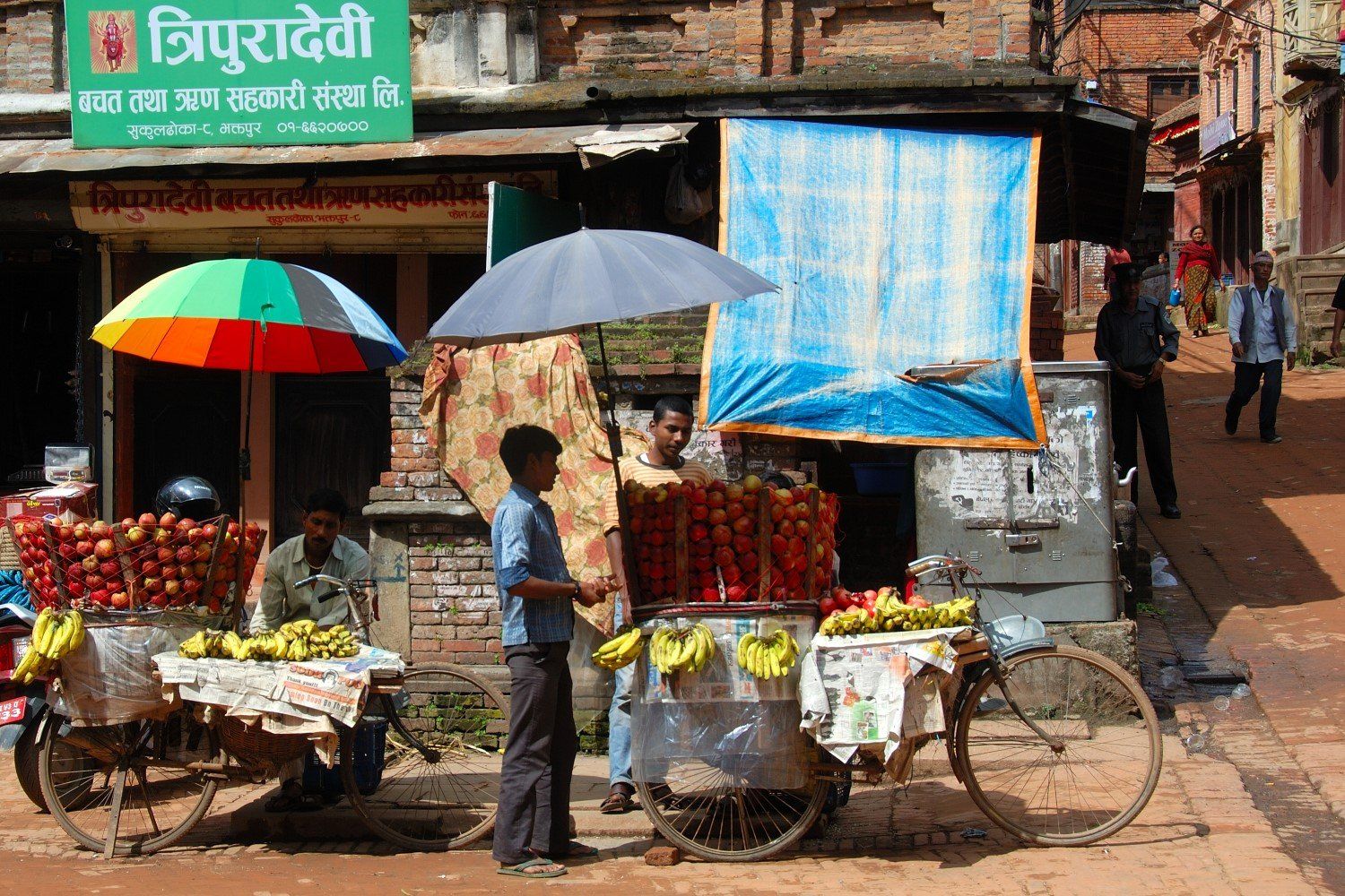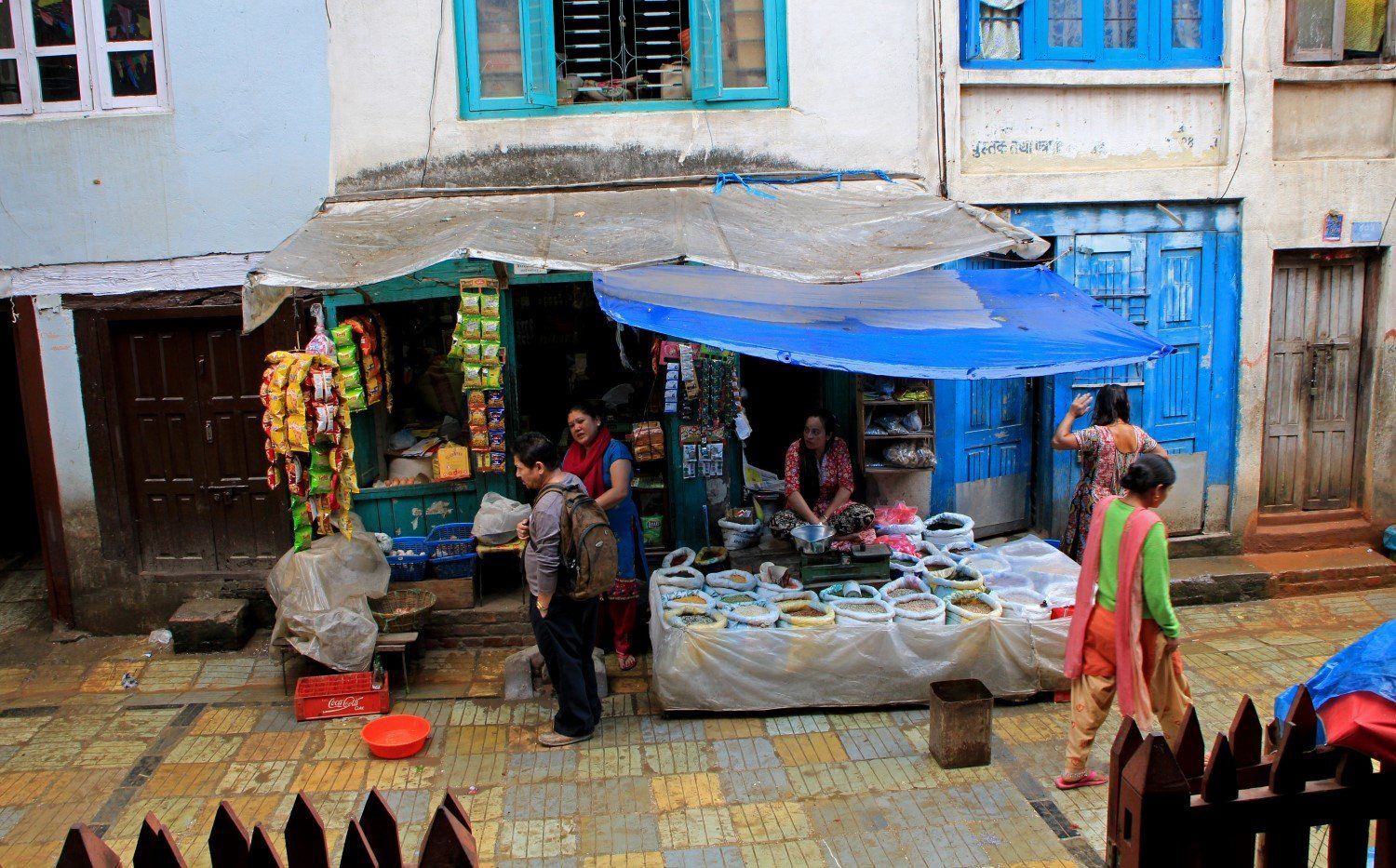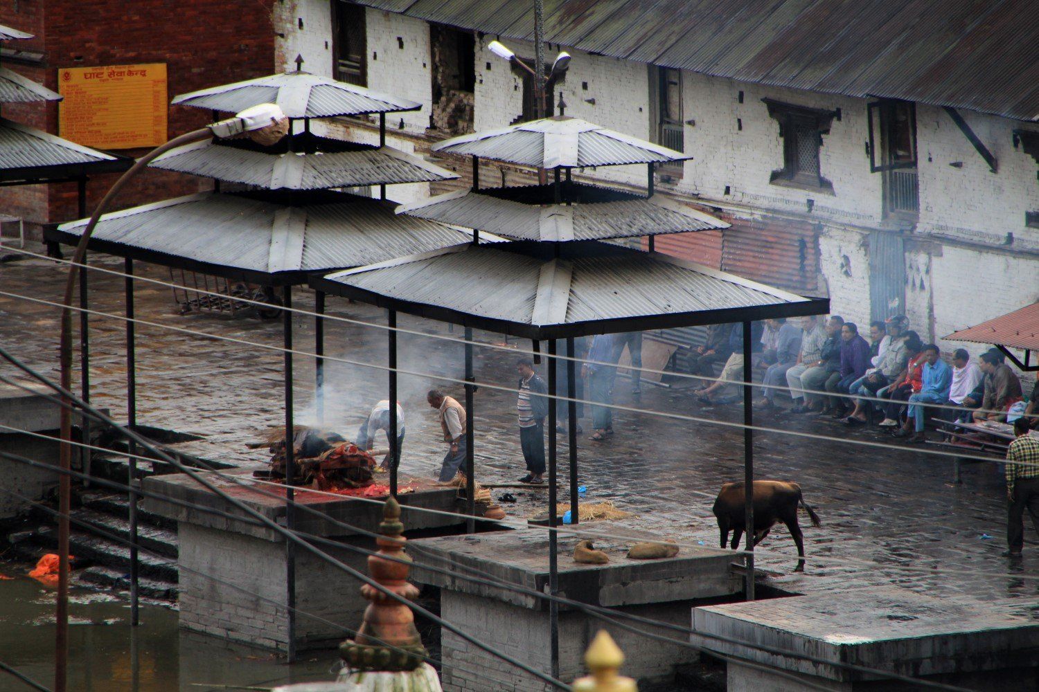 Vroeg in de ochtend landen we in Kathmandu. Nog gaar van de lange vlucht ga ik rustig Kathmandu verkennen. Vanuit het hotel weet ik de weg naar Durbar Square nog te herinneren. Het is grijs en regenachtig in Kathmandu, dus ik koop snel een paraplu. Durbar Square is het oude centrum van Kathmandu, een historisch plein met koninklijke paleizen, monumenten en tempels. Het is er druk, rond de tempels zitten kooplui, riksja's en een optocht van kleurrijke vrouwen die een aardewerken pot dragen. Daarna met de taxi naar Pashupatinath. Pashupinath is de belangrijkste hindoetempel van Nepal en een indringende plek waar de vergankelijkheid van het leven centraal staat. Langs de oevers van de heilige Bagmati-rivier worden overleden gelovigen verbrand, waarna de as in de rivier wordt uitgestrooid. Je treft hier ook bontgekleurde saddhu’s aan. Deze heilige mannen zijn volgelingen van Shiva. Ze willen alleen tegen betaling op de foto, dus stiekem een foto gemaakt. Verderop op het terrein van Pashupatinath treffen wij het enige bejaardentehuis van Nepal. Ook lopen er veel apen rond, maar of die nu toeristische attractie of een plaag zijn, ik weet het niet.