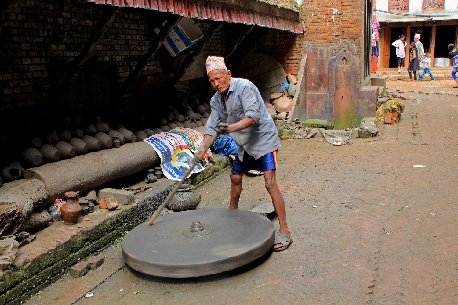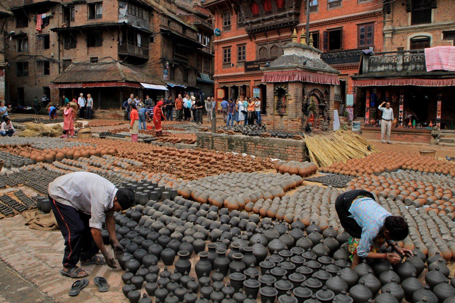 Vandaag gaan we met een aantal met de taxi naar Bhaktapur. Bhaktapur is één van de meest tijdloze steden van de drie Koningssteden (Kathmandu + Patan). Het historisch centrum van Bhaktapur is geheel autovrij en daarmee wordt de sfeer van de middeleeuwse stad nog charmanter. Eerst loop ik wat rond over Durbar Square met zijn prachtige paleizen en tempels. Daarna kom ik via een aantal kleine straatjes op Potter’s Square. Hier kan je de oude ambacht van potten bakken nog live aanschouwen. De mannen maken de potten, de vrouwen versieren ze.