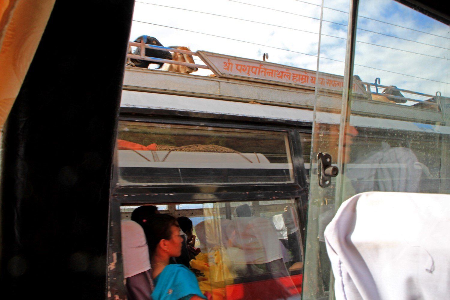 Direct nadat we per bus uit Kathmandu zijn vertrokken, stijgen we naar een pas over de bergrand die Kathmandu-vallei omgeeft. De weg daalt hierna tot ongeveer 400 meter hoogte en loopt langs de Trisuli-rivier. Beneden zien we soms een enkele groep in rafts de soms onstuimige rivier afzakken. Bij Muglin stoppen we even voor de lunch waarna de reis wordt vervolgd. Een man vervoerd kippen in kooi van bamboe. Net voor Pokhara verlaten we de grote weg en slaan we rechtsaf een smal bergweggetje in. Dan is het nog een uurtje draaien en stijgen voor we bij de kampplaats aankomen op de kam. Van hier uit hebben we een mooi uitzicht op de Annapurnaketen en `s avonds zien we beneden in het dal de lichtjes van Pokhara.