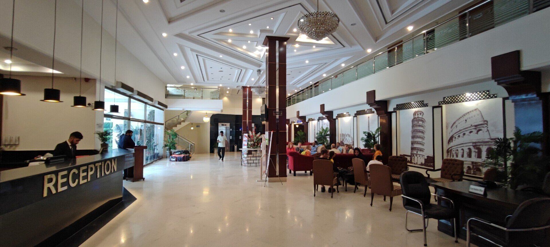 In de hotellounge wachten we op de kamersleutels