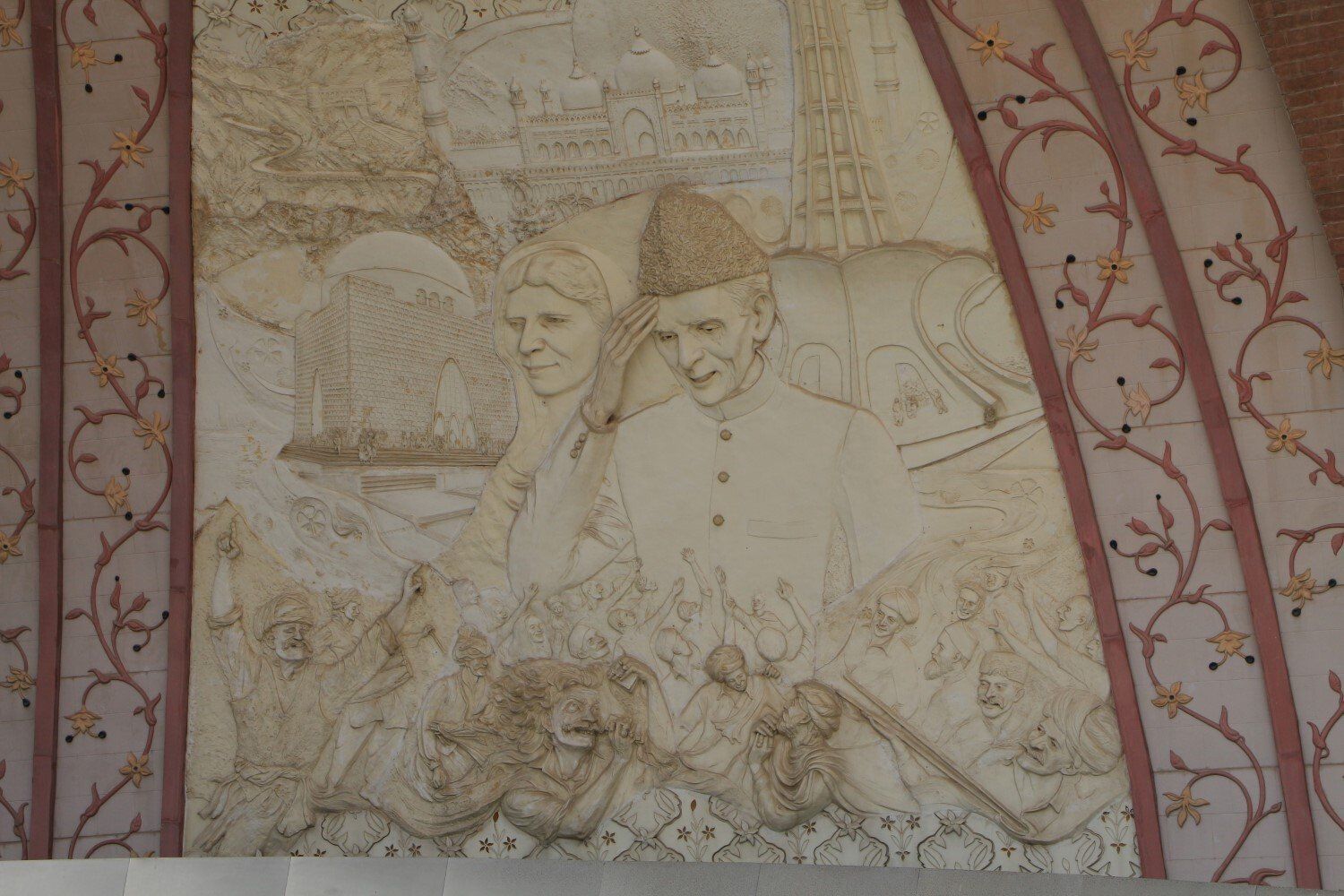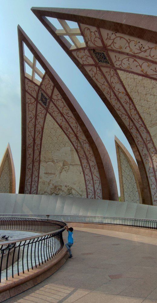 Wat wel vrij toegankelijk is, behalve dat je er niet mag roken, is het in 2007 gebouwde Pakistan-monument. Deze toeristische attractie vertegenwoordigt het patriottisme en de soevereiniteit van Pakistan. Het ontwerp heeft de vorm van een koepel met bloembladvormige muren die zijn gegraveerd met kunst die de andere toeristische bezienswaardigheden van Pakistan uitbeeldt. Best mooi, maar helaas staat de helft in de stijgers. Het is flink warm, ondanks dat het licht bewolkt is, met niets doen zweet je je t-shirt nat.