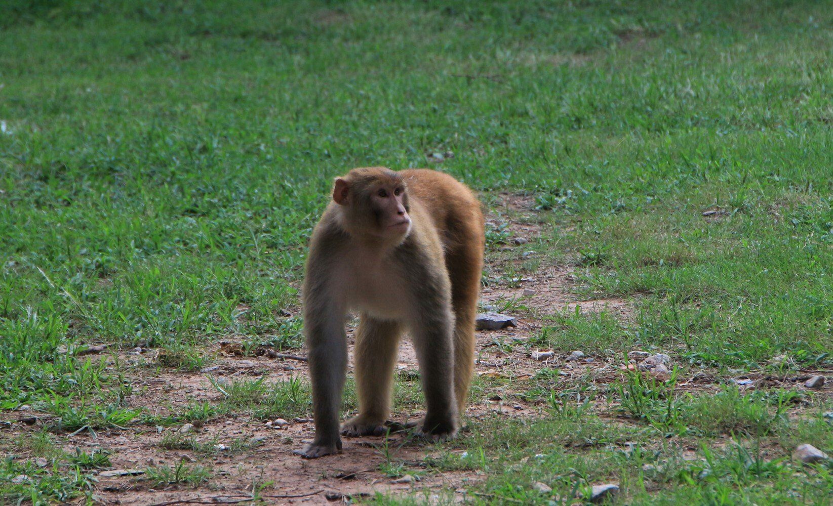 Wanneer we weer teuglopen naar de bus, zien we ineens een aap op het dak van de grote moskee lopen...