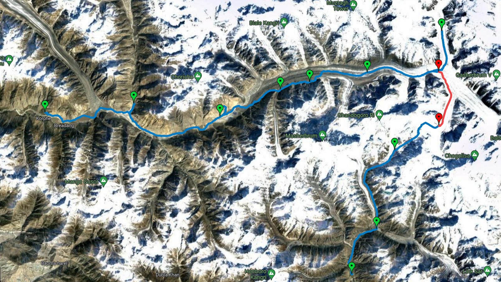 We volgen een veel minder bewandelde route langs de Upper Baltoro