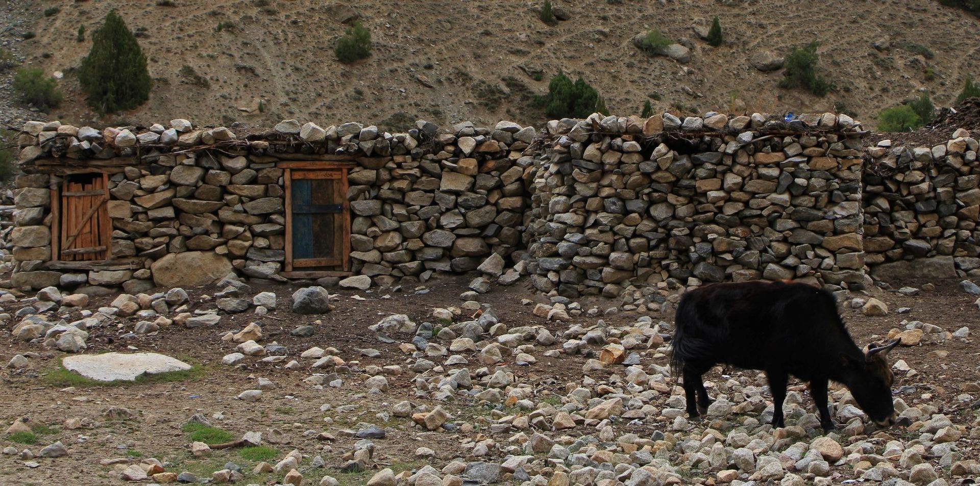 Ondertussen komen we steeds meer in bewoond gebied, we passeren een koe voor een herdershut...