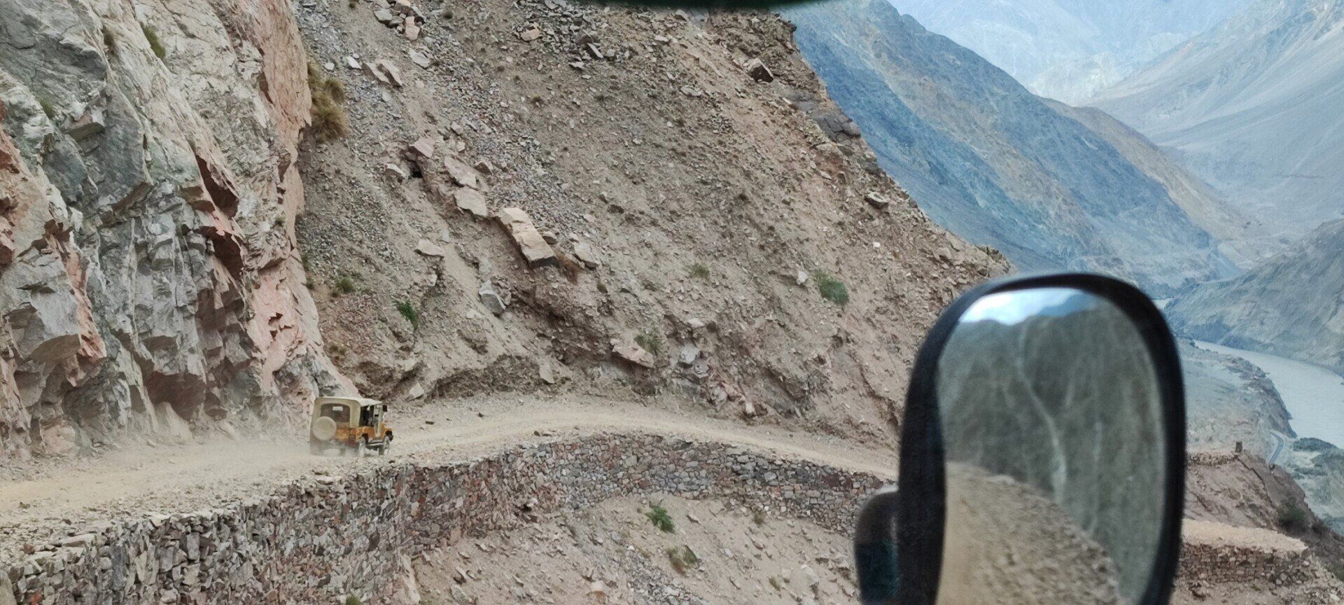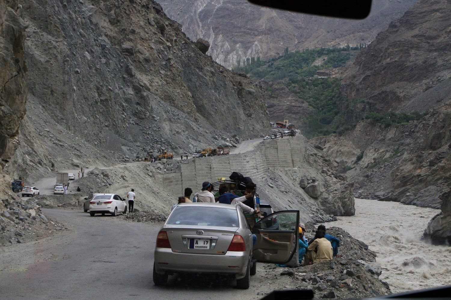 Net voor Gilgit slaan we af en verlaten we de Karakorum High Way richting Skardde weg wordt nu nog smaller en kronkelt mee met de woest stromende rivier.