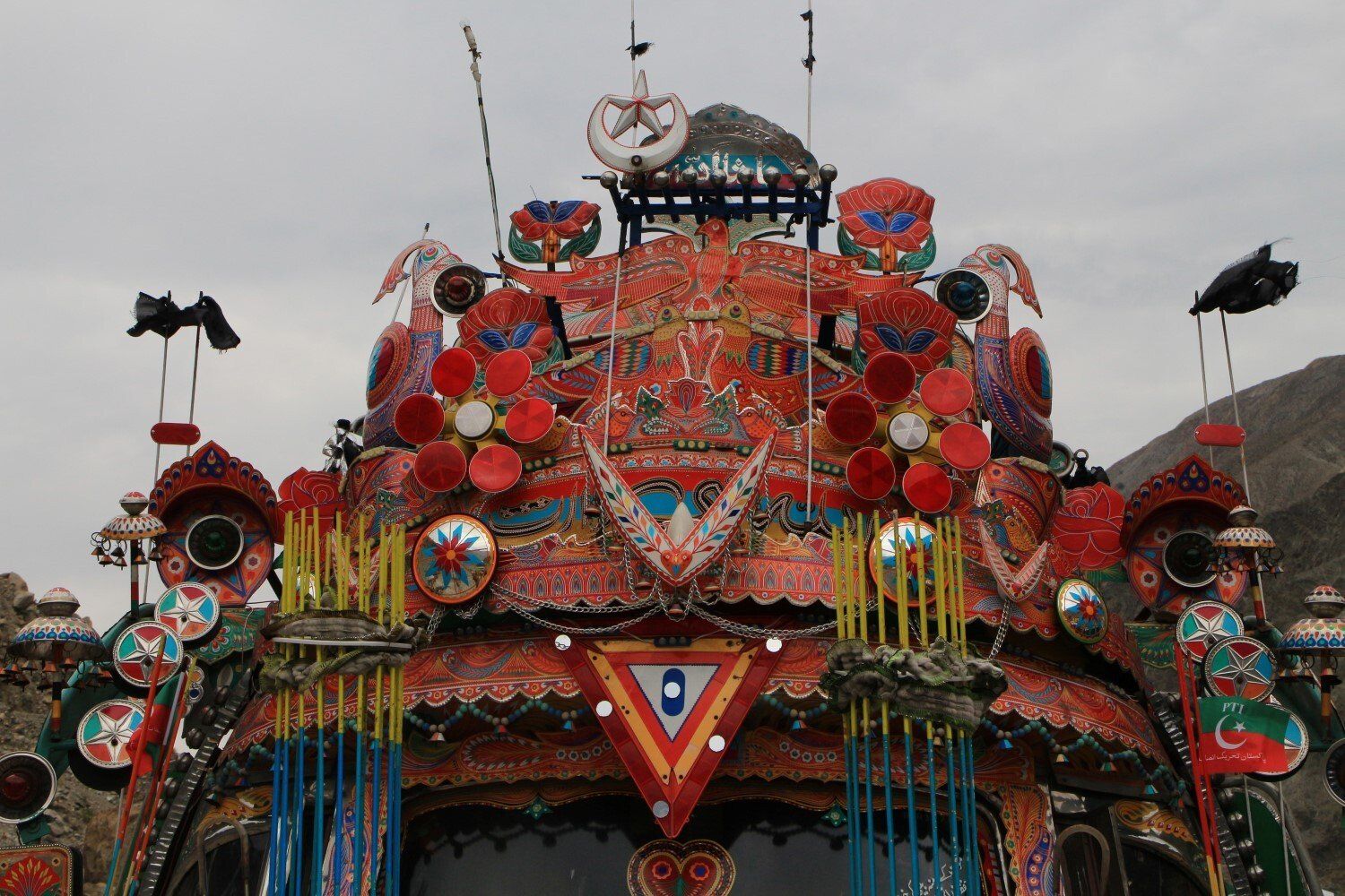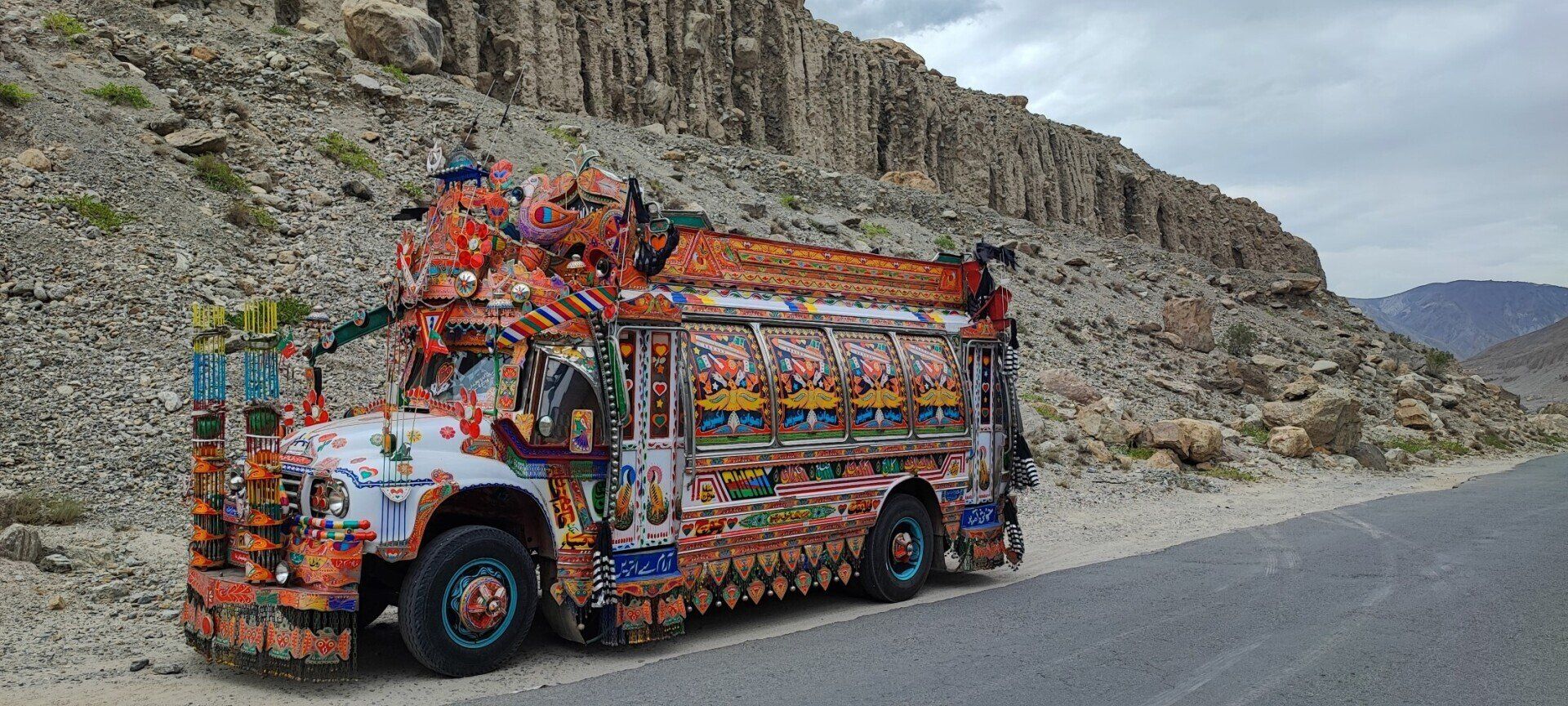 In Raikot Bridge staat een prachtige druk versierde vrachtwagen geparkeerd