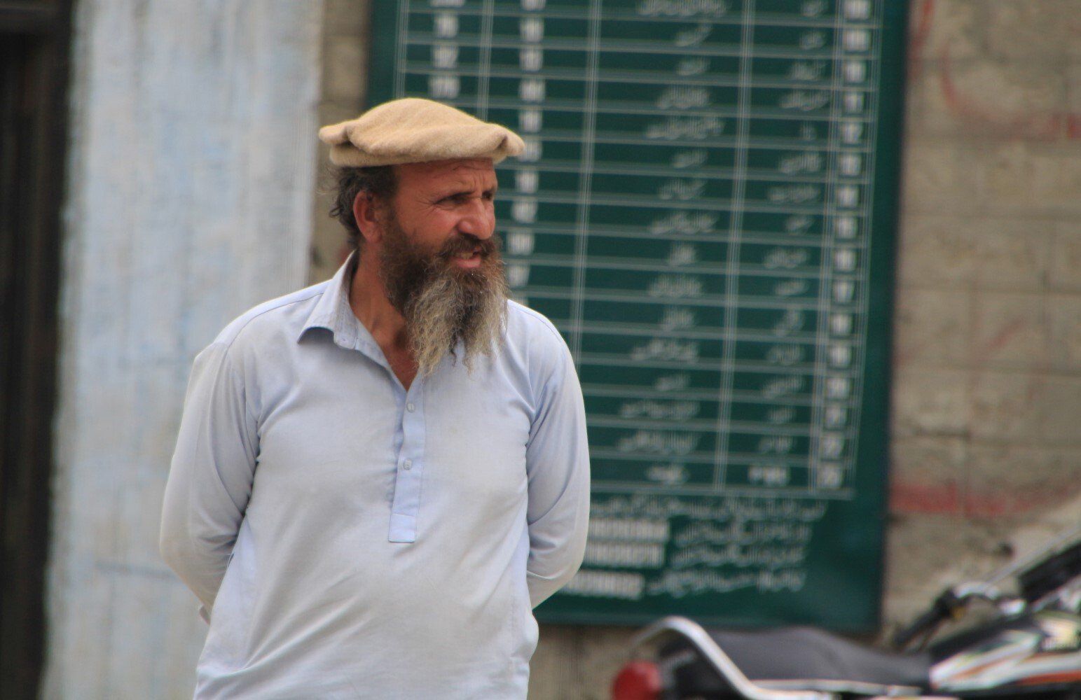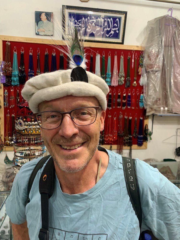 Maar eerst even in een souvenirwinkel een Pakistaans hoofddeksel, een pakol, gekocht.