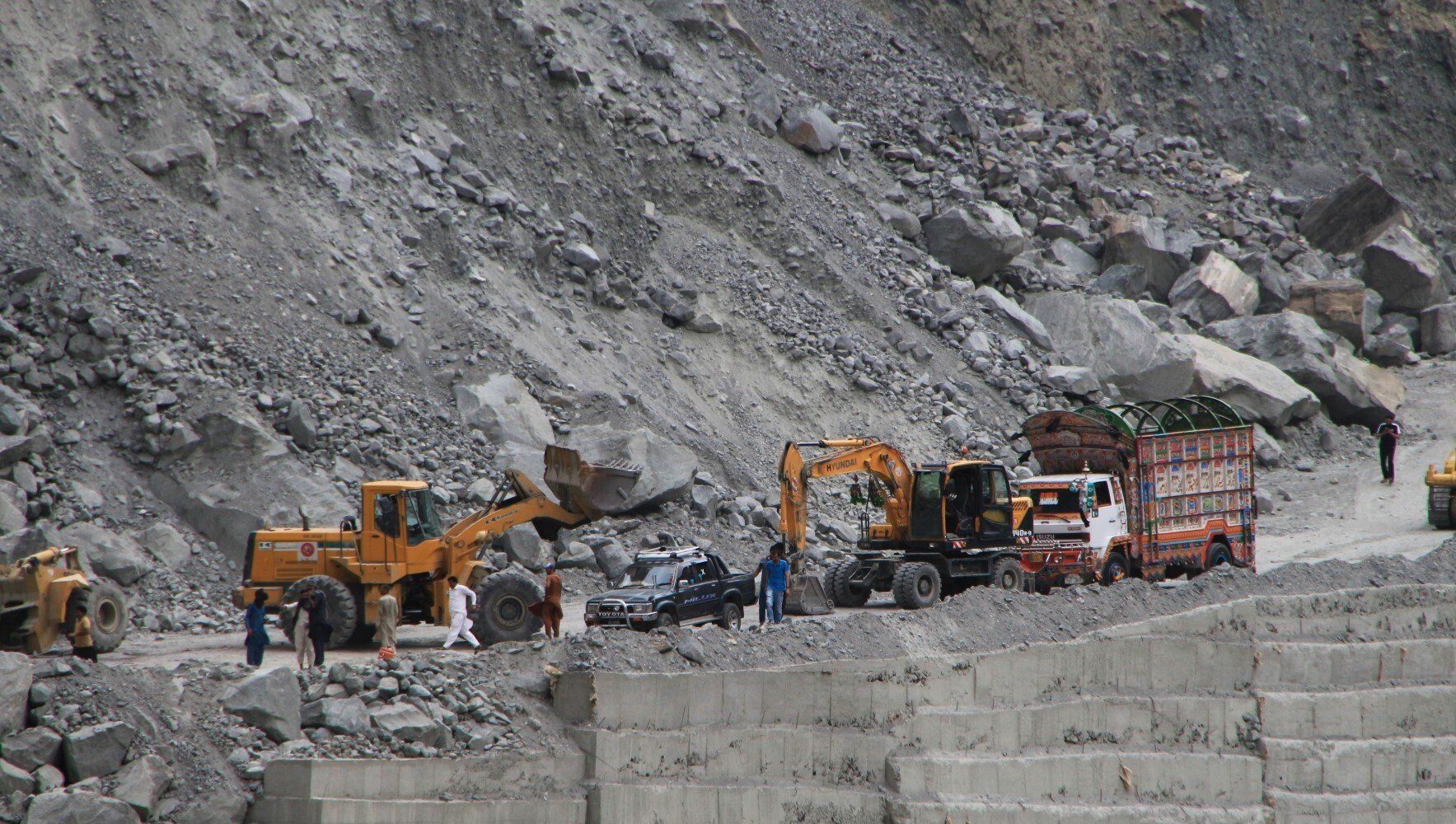 Onderweg komen we al bouwvakkers tegen...