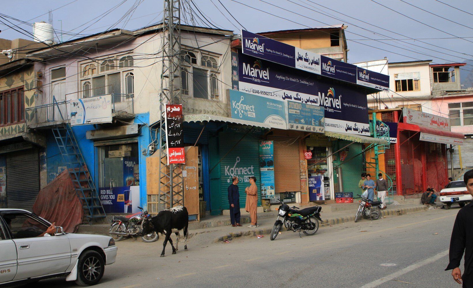 Een koe slentert ook door de straat.