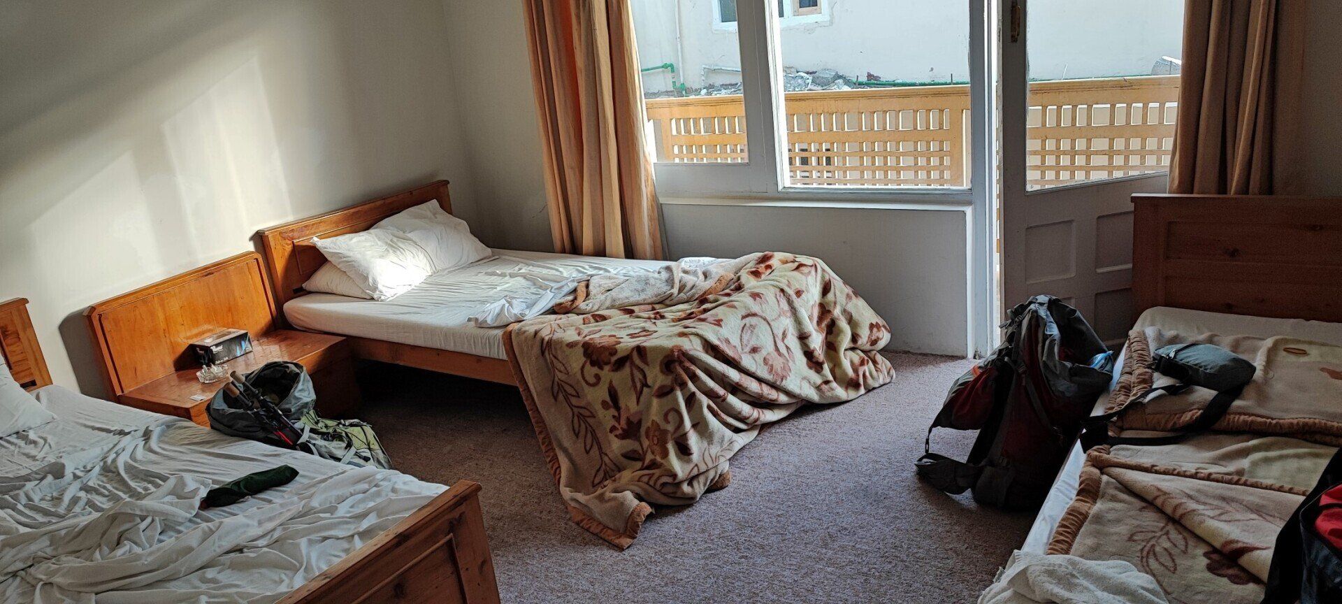 Terug in het hotel blijkt onze kamer geen warm water te hebben, in de kamer naast ons die wordt schoongemaakt, kunnen Mark en ik gelukkig wel even snel douchen. Voor een extra rol wc papier moeten we ook vragen, en de wifi werkt het best bij de receptie. Overdag hebben de kamers geen elektriciteit. Voor Pakistaanse begrippen is dit een `luxe` hotel.