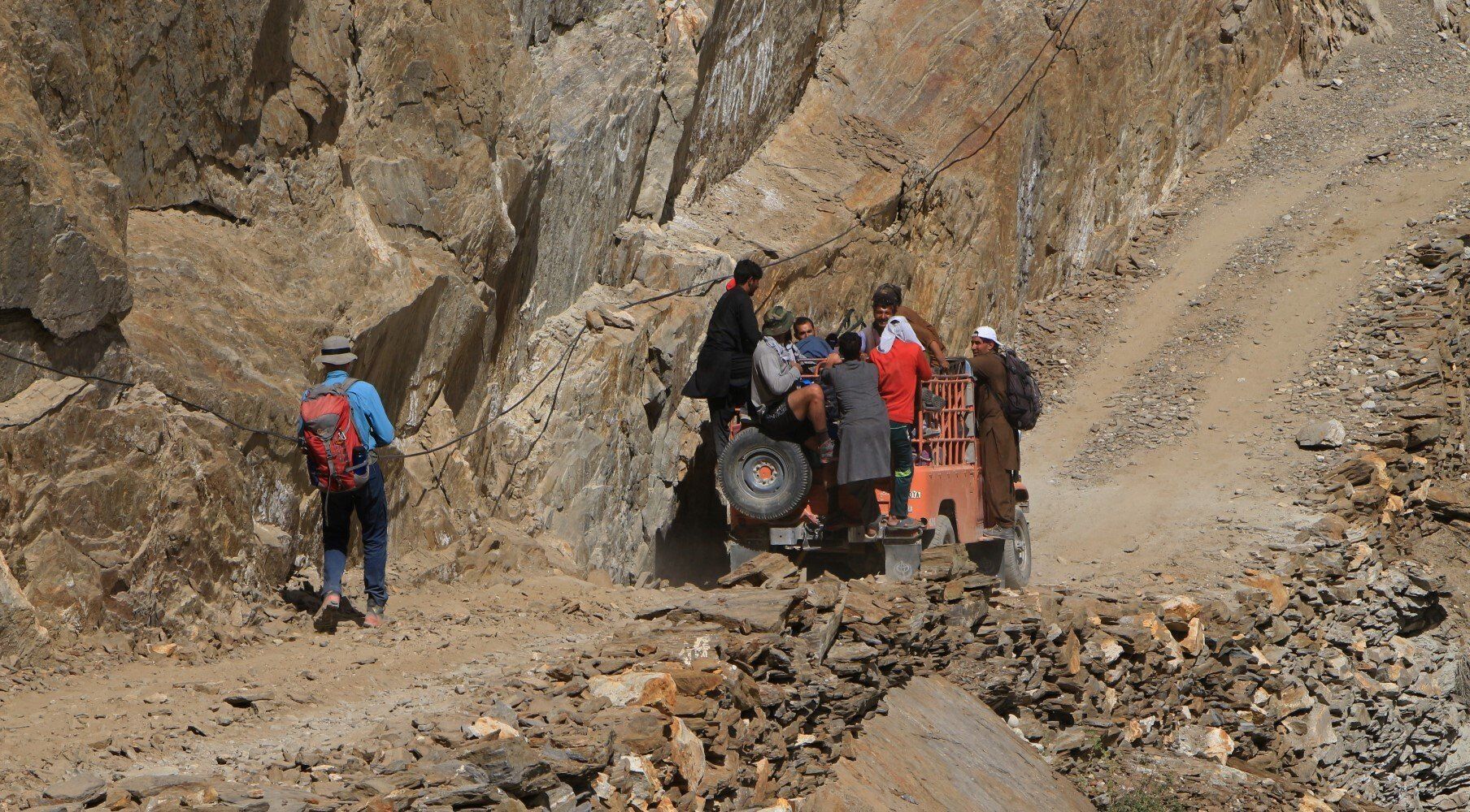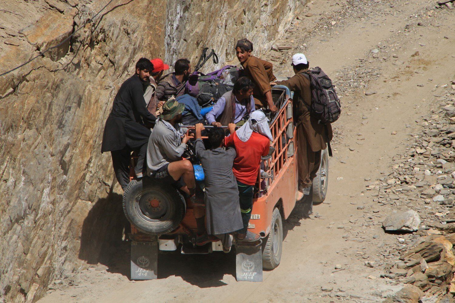 ...en een afgeladen volle jeep passeert ons...